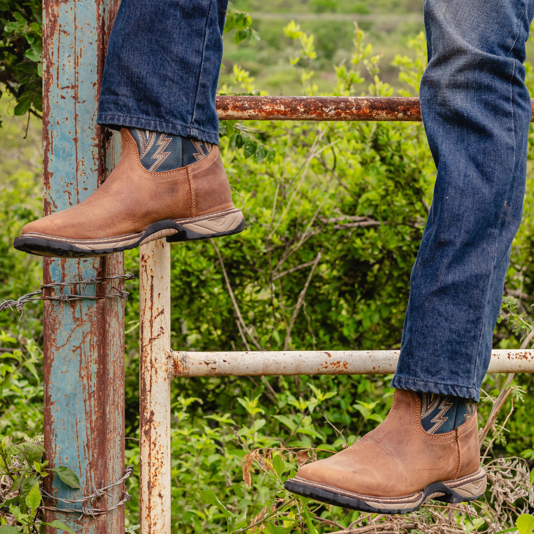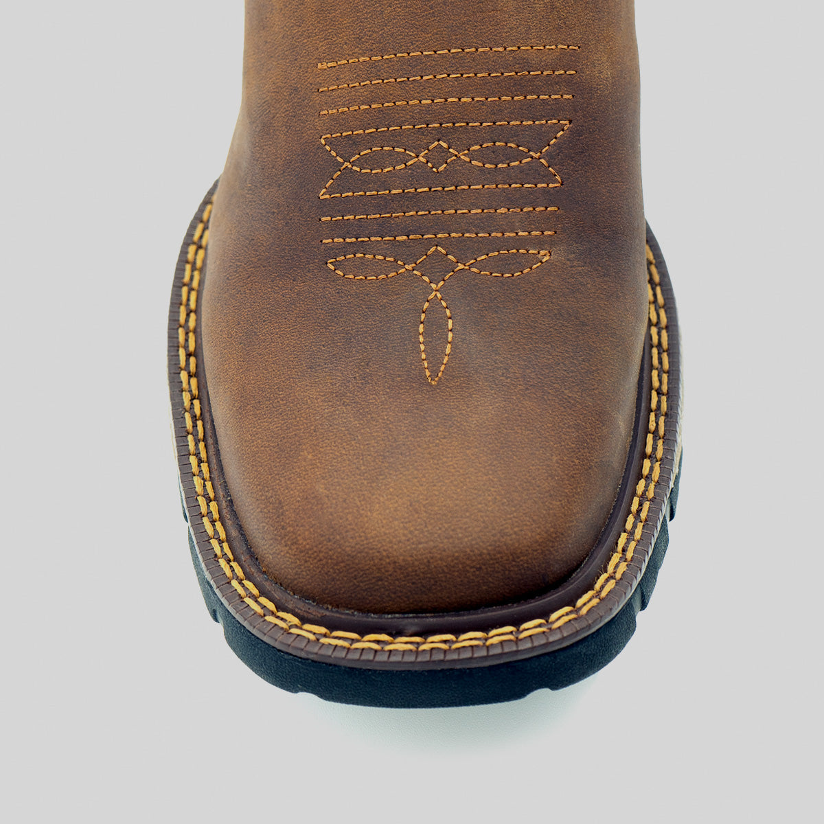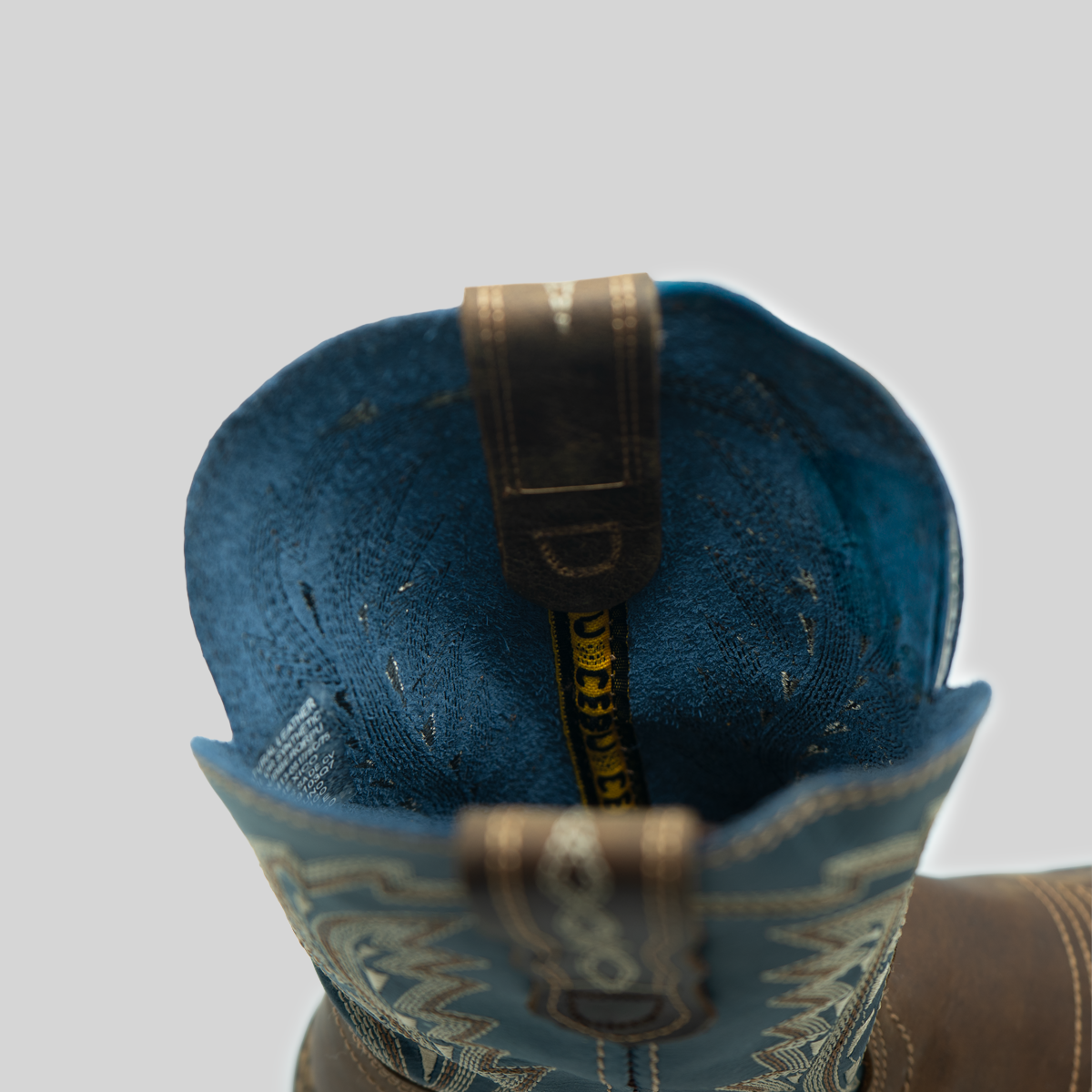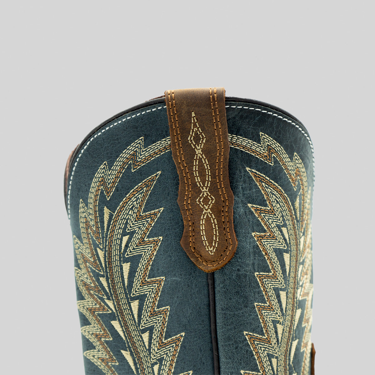 Destacando por su diseño robusto y moderno, con costura que refleja su alta calidad. El tubo verde aqua contrasta elegantemente con el marrón cálido, y los bordados beige con matices verdes añaden sofisticación y detalle. Estas botas son ideales para quienes buscan resistencia y funcionalidad con un diseño único y atractivo.