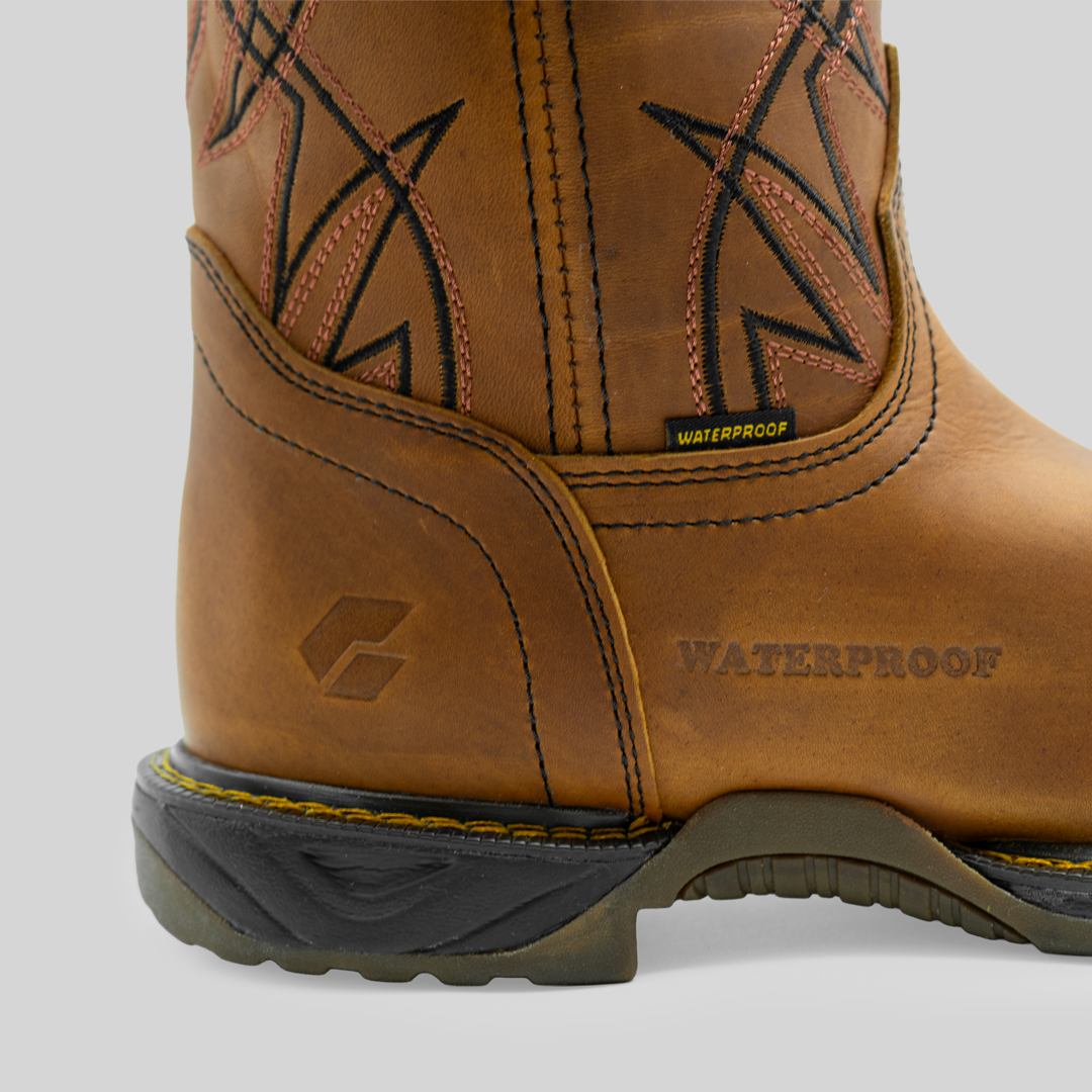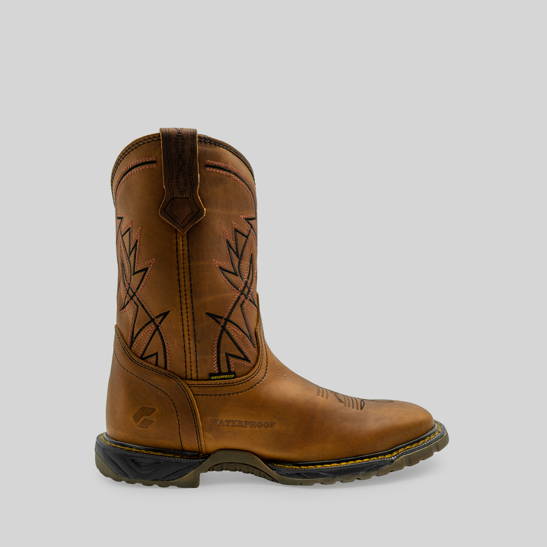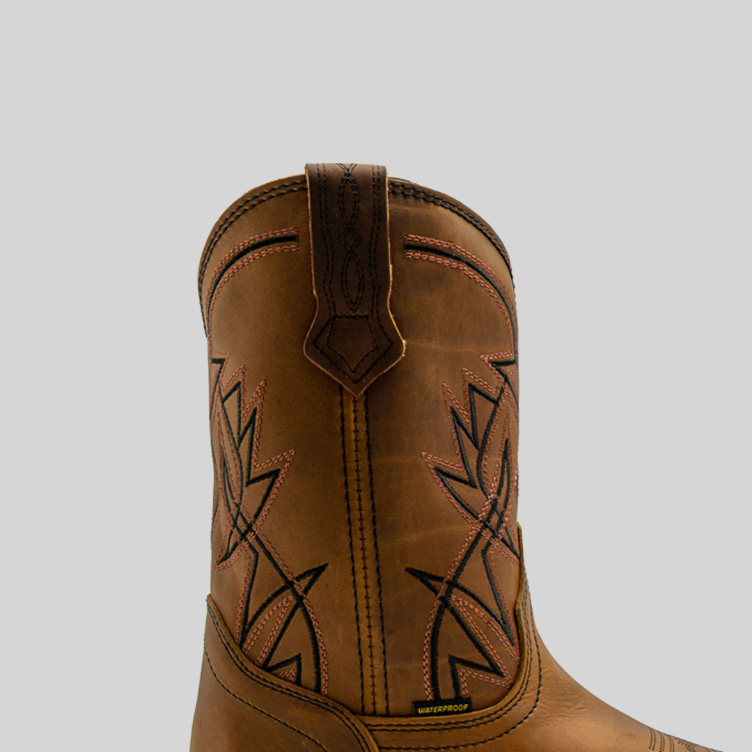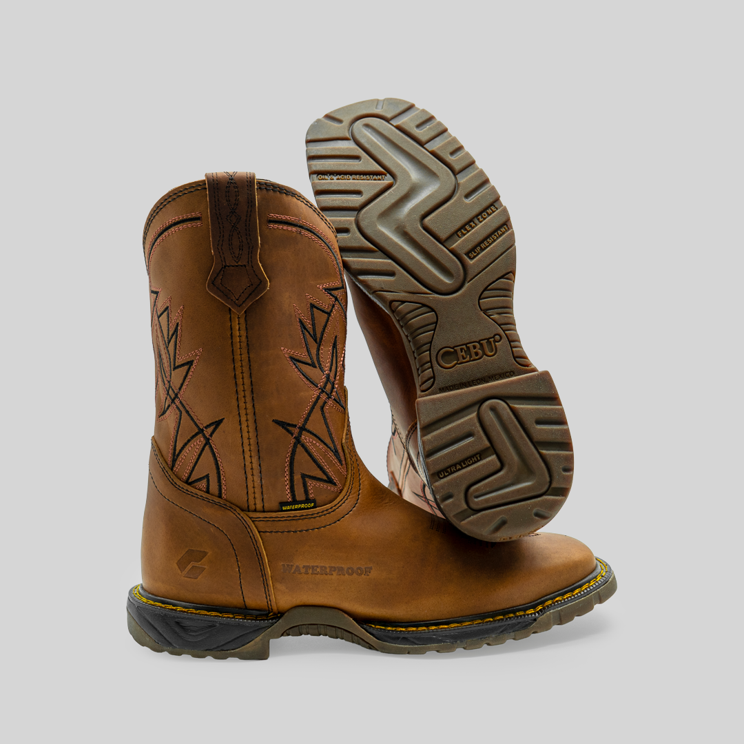 La bota que combina estilo, resistencia y comodidad en cada paso. Fabricada en piel 100% genuina de bovino hidrófugada, en elegante tono atanado, incorpora tecnología Waterproof para mantener tus pies secos en cualquier clima. Sus bordados especiales en color negro aportan un toque distintivo y sofisticado, ideal para quienes buscan durabilidad sin renunciar al diseño.